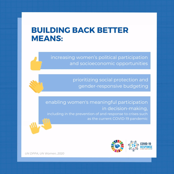 We are at a crossroads: either we lose hard-fought gains on women’s rights and sustainable peace, or we emerge more equal, resilient and on a road to lasting and inclusive peace. Ensuring women’s equal and meaningful participation in all areas of peace and security is vital to responding to this crisis and creating a better and more sustainable world.